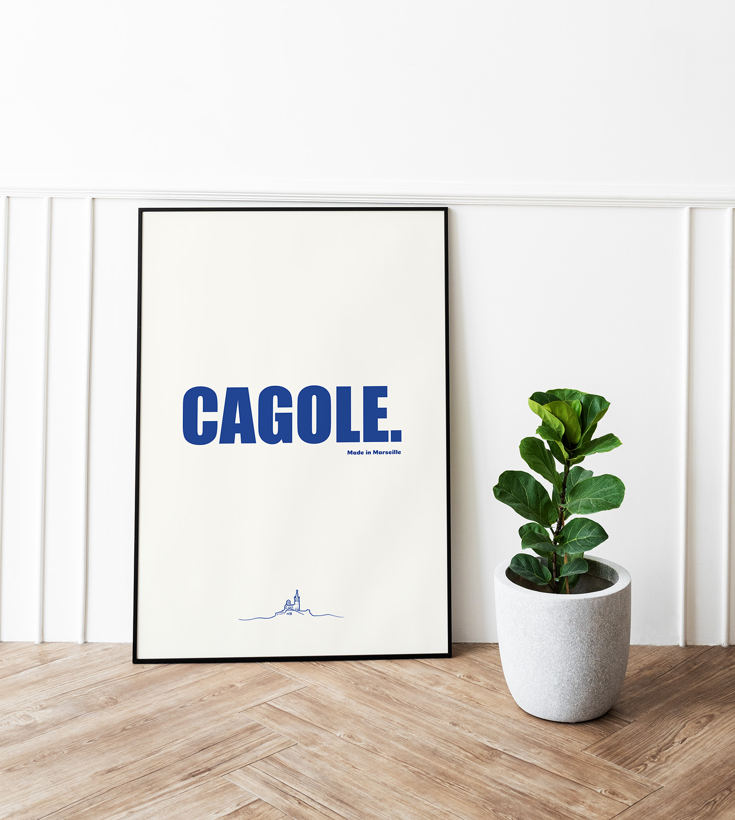 Combine cette affiche Cagole avec d’autres affiches de la Collection Sud pour créer un mur coloré et identitaire, qui respire Marseille et la Méditerranée.