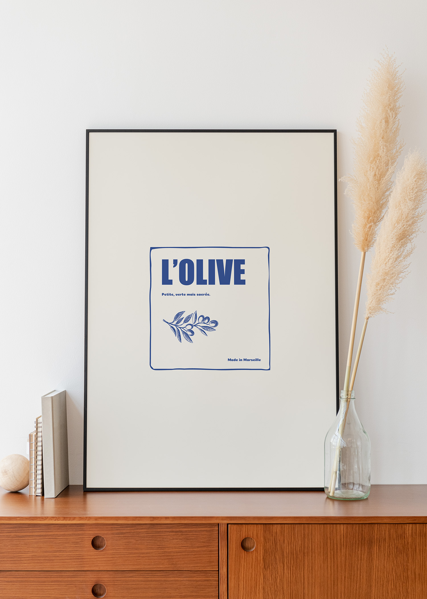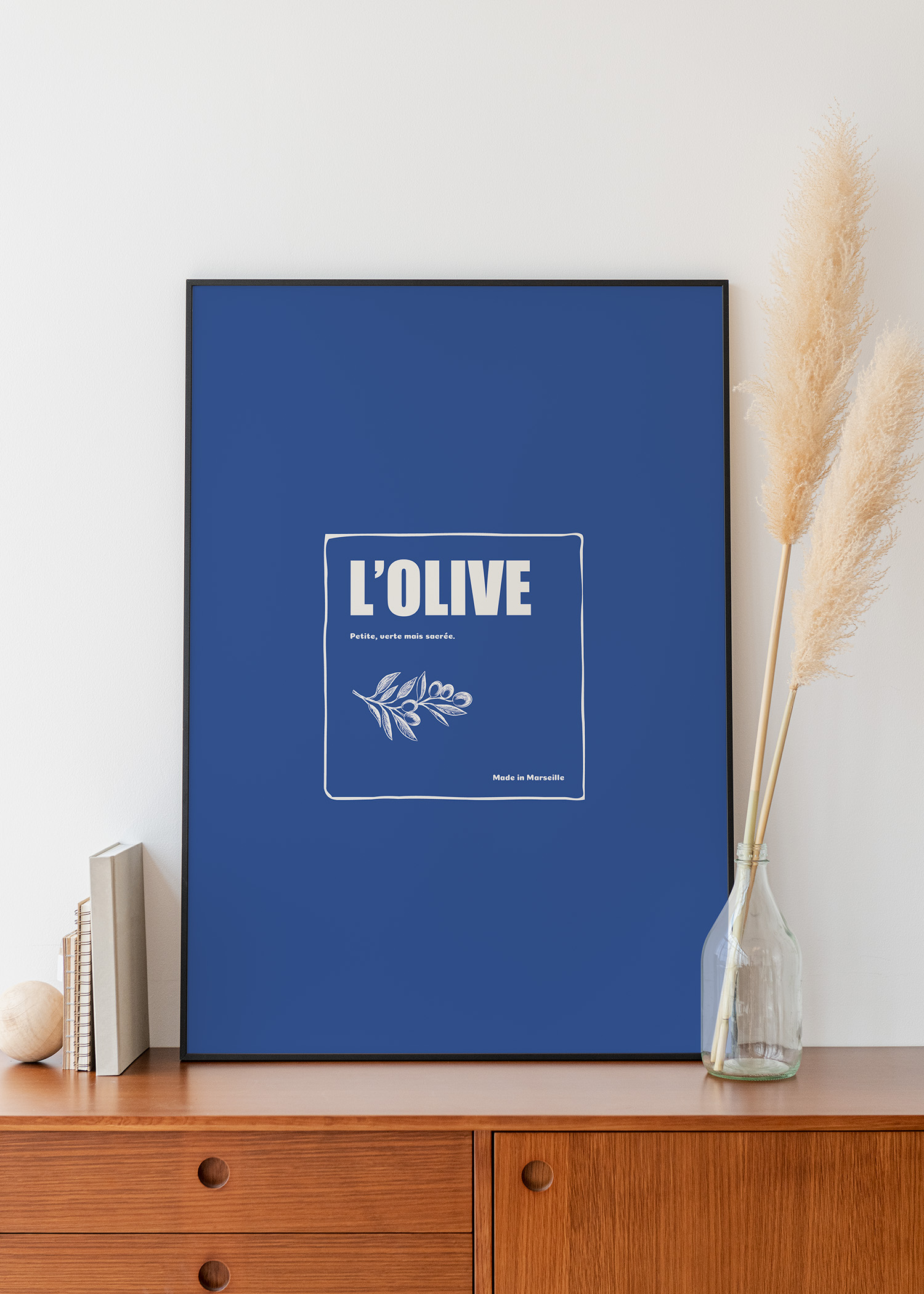 Envie d’une touche méditerranéenne chic et minimale ? Cette affiche déco sud “L’Olive Marseille” célèbre l’iconique rameau d’olive dans une composition épurée, idéale pour un intérieur chaleureux et solaire. Elle existe en deux versions complémentaires : fond blanc pour un style lumineux et fond bleu pour une ambiance plus profonde et graphique.