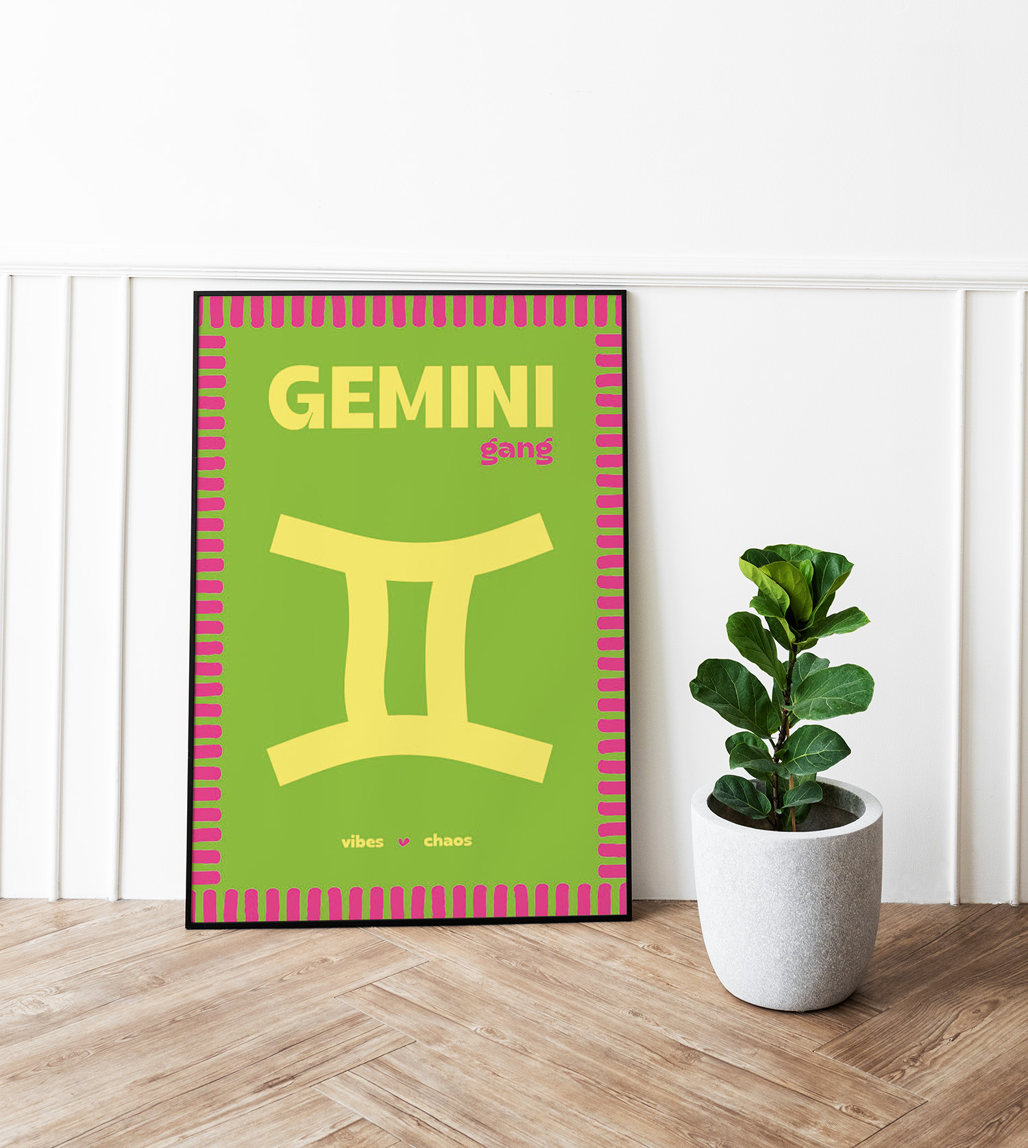 Fais entrer ta vibe double face dans ta déco avec cette affiche signe astrologique Gémeaux pleine de pep’s 🌈