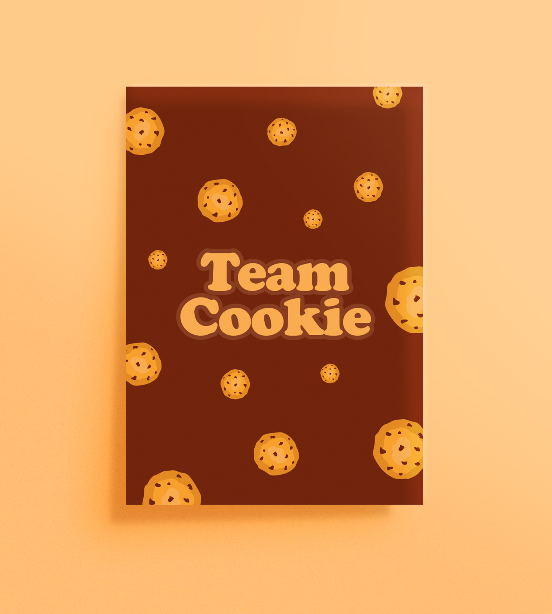 Cette affiche Team Cookie est parfaite pour les amoureux de douceurs, les fans de pâtisserie ou ceux qui adorent une déco fun et sucrée.